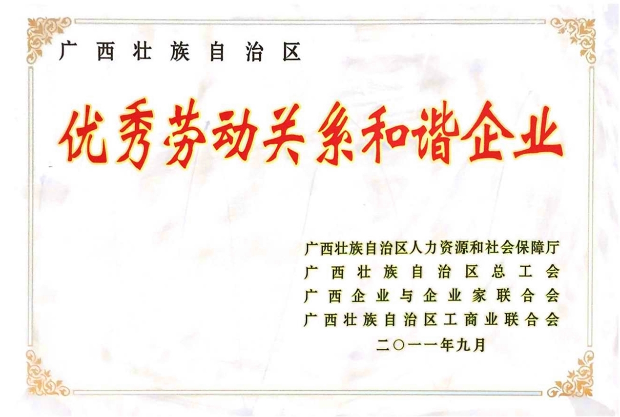 廣西壯族自治區優秀勞動關系和諧企業